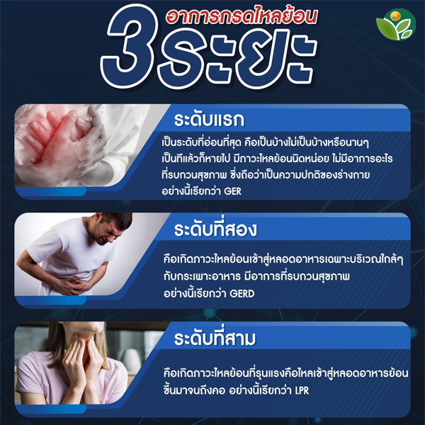 กรดไหลย้อน เป็นภาวะที่น้ำย่อย จากกระเพาะอาหาร ไหลย้อนขึ้นไป ในหลอดอาหาร ทำให้เกิดอาการ แสบร้อนกลางหน้าอก เรอเปรี้ยวบ่อยๆ ซึ่งส่งผลกระทบอย่างรุนแรง ต่อคุณภาพชีวิต ของผู้ป่วย